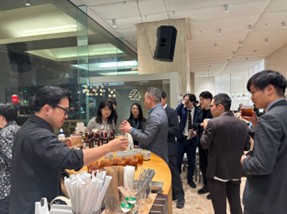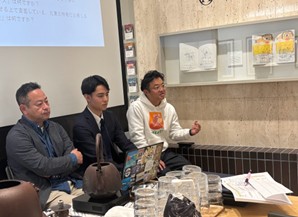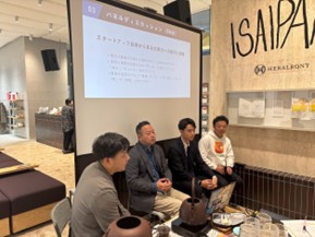 同会場にて懇親会が実施された。起業家と支援者がリラックスした雰囲気の中で交流し、ワークショップで深掘りできなかった具体的な課題や連携の可能性について、フランクな意見交換が行われた。これにより、今後の連携に不可欠な信頼関係とネットワークの強化が図られた。また、タグボート様のシードルも提供され、楽しみながら参加者間の相互理解を深める場となった。